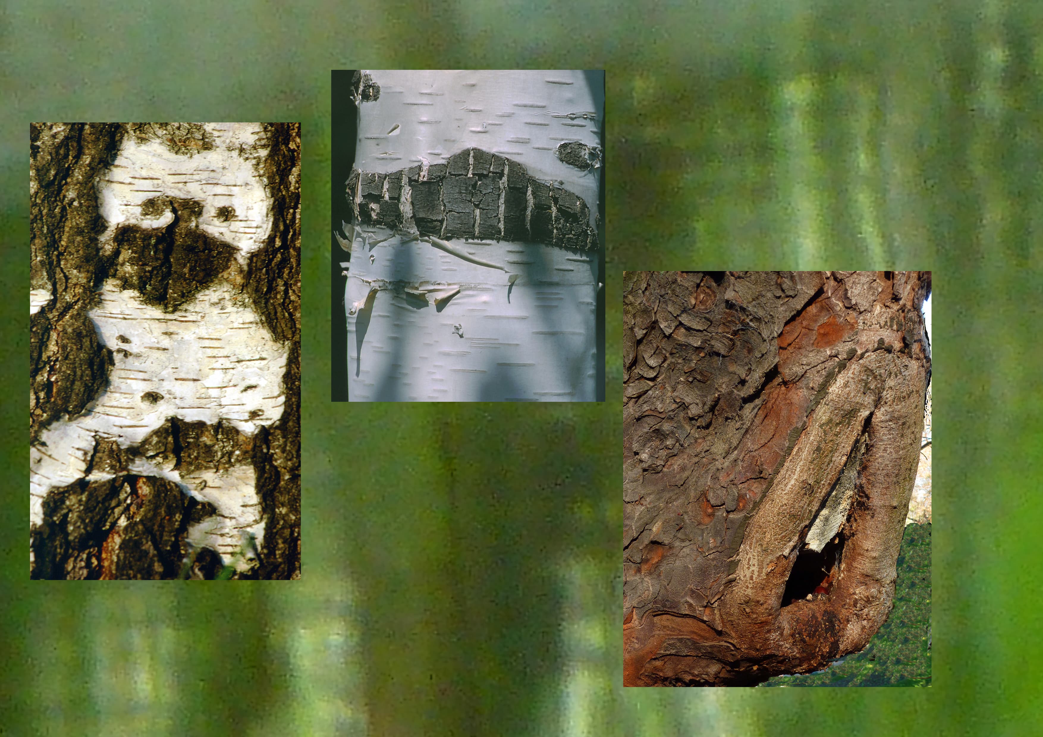 Cerisier, pin, bouleau blanc